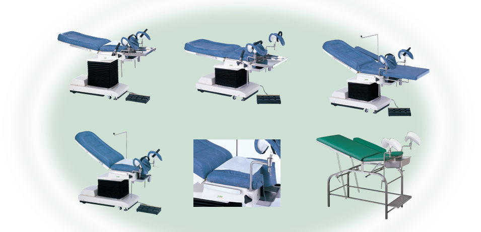 - Đặc biệt, giường khám sản phụ khoa có thể điều chỉnh được mọi  tư  thế, người sử dụng có thể  điều khiển bằng bàn đạp chân để điều chỉnh bộ phận bàn đỡ lưng lên/xuống, đầu bàn lên/xuống và cả bộ phận ghế ngồi lên/xuống (chỉ có cho loại SG-510, SG-520, và SG-530  )