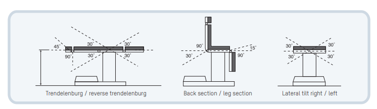 - Loại “N” là độ cao mặt bàn đặc biệt 54-102 cm cho hoạt động phẫu thuật thần kinh.
