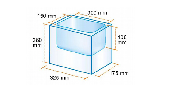 - Kích thước bên trong W/D/H (mm): 300 / 150 / 100