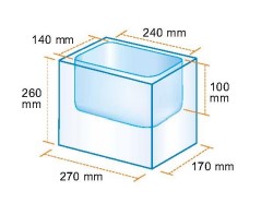 - Kích thước bên trong W/D/H (mm): 240 / 140 / 100