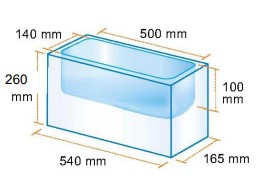 - Kích thước bên trong W/D/H (mm): 500 / 140 / 100