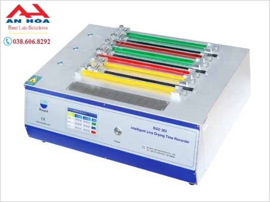 - Dụng cụ ghi thời gian khô của màng sơn có ba rãnh có thể đặt độc lập bất kỳ thời gian chạy nào (mỗi rãnh có hai rãnh làm việc).
