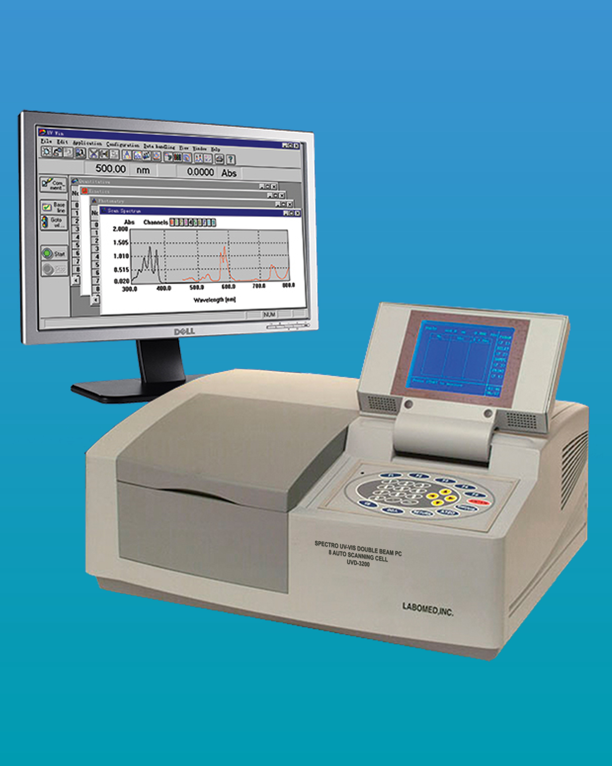 - Model UVD-3200 được thiết kế với hệ quang mới có thể điều khiển bằng bộ vi xử lý.