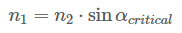 Khi α2 = α tới hạn thì góc α1 = β1 = 90°. Việc thay thế các giá trị này vào định luật Snell sẽ cho
