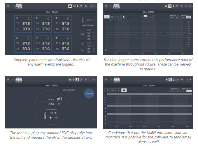 Chính xác từng thông số: 6 cảm biến nhiệt độ PT100 độc lập cùng với đó là 6 cổng khí gas cho 6 buồng riêng biệt. Có thể kết nối cùng thiết bị phụ trợ optional để đối chiếu nhiệt độ và khí gas ( Thiết bị phụ trợ MIRI GA for validation)