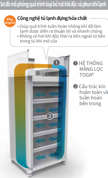 Bản cao cấp với hệ thống tuần hoàn khí, tạo hơi lạnh đi vào từng ngăn