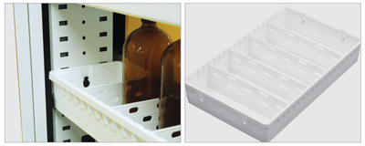 Các khay PP chống hóa chất vượt trội đi kèm với các ngăn kéo giữ cho vật liệu phòng thí nghiệm gọn gàng và ngăn nắp.